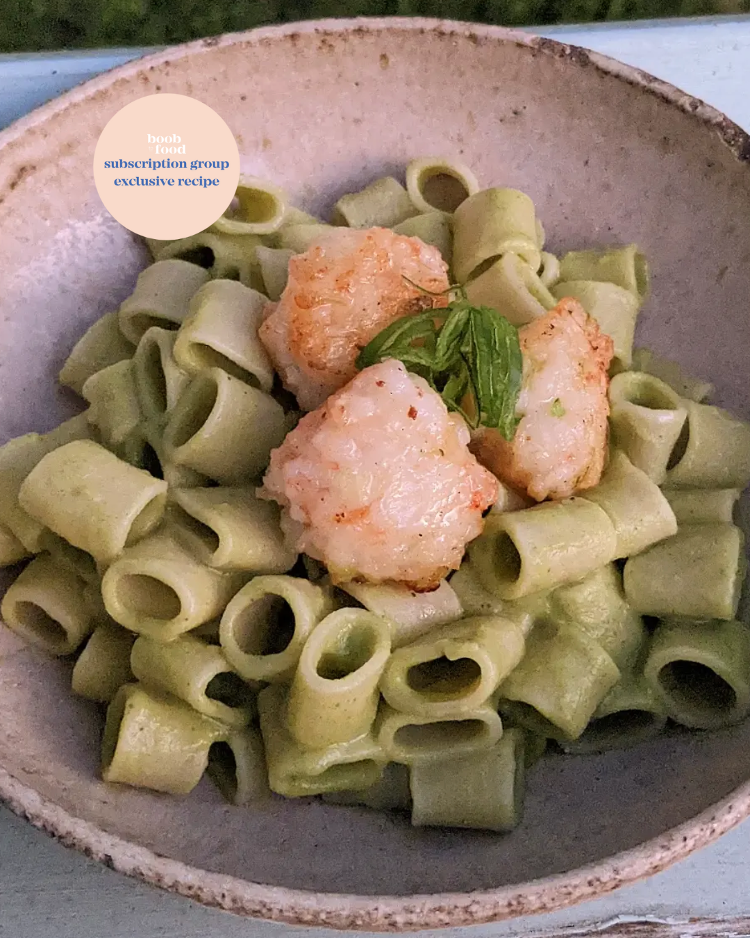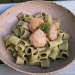 Broccoli ‘Cream’ Pasta with Prawn Balls