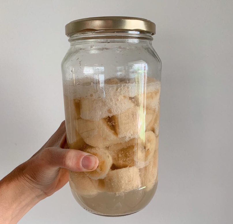 Order nowThis picture is bananas fermenting in kefir (from water grains). To make kefir you need to buy some grains (look in your local health food shop for grains) or some culture starters such as from Kultured Wellness then follow the instructions to make kefir. It’s SO easy, and I prefer kefir to kombucha as it’s a quicker turnaround time (about 2 days to have kefir ready!)