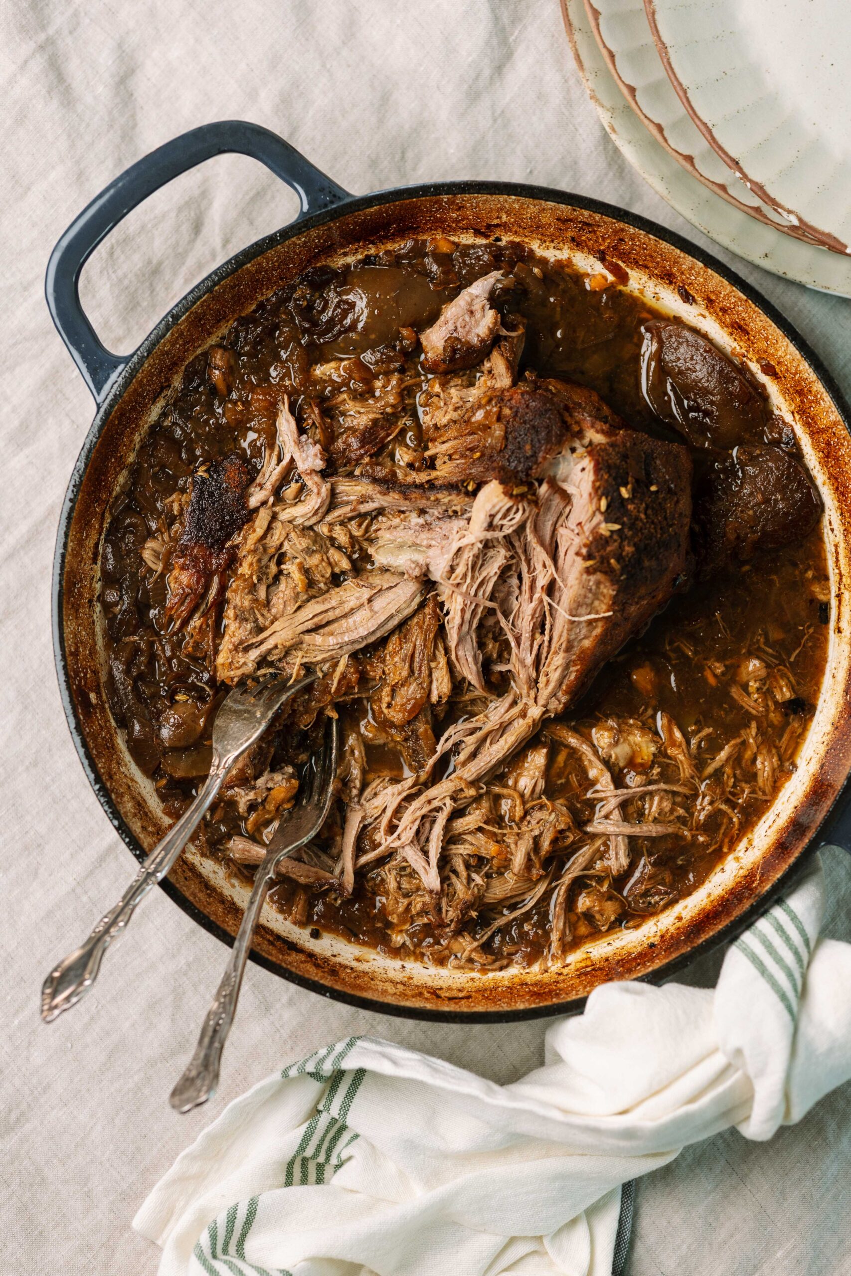 Return pork (and any juices) to the pot. Liquid should come up about ⅔ of the way.