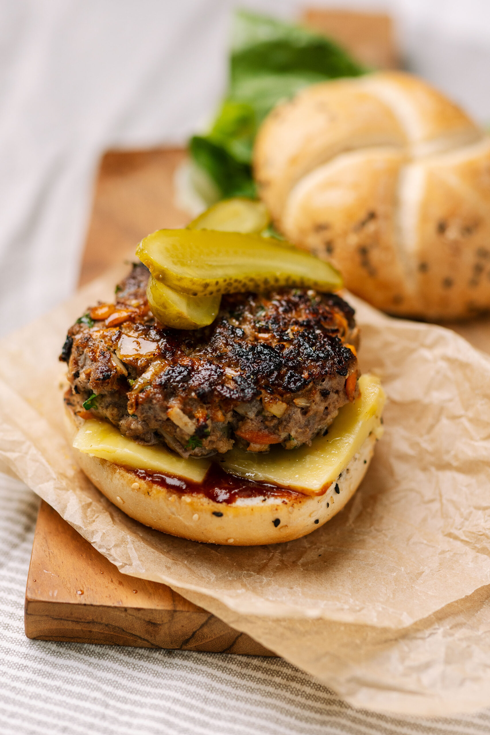 In a large bowl, add onion, garlic, carrot, beef mince, parsley, egg, BBQ sauce, and breadcrumbs. Mix with your hands until well combined.