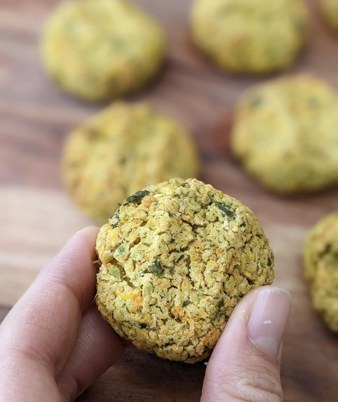 These chickpea and edamame bites are a protein-packed staple in our kitchen—perfect for little hands and big appetites alike. Made with simple pantry staples like chickpeas, frozen edamame, fresh parsley, and warming spices, they’re rich in fibre, plant-based protein, and flavour. They’re ideal for baby-led weaning once soy and sesame are tolerated, and are a great way to maintain tolerance to two of the top 9 allergens. They work well as finger food for toddlers, lunchbox additions, or adult snacks. Bake them in batches and freeze the raw mixture for easy prep on busy days. Serve them with dips, veggie sticks, or pop into wraps and bowls for the whole family.