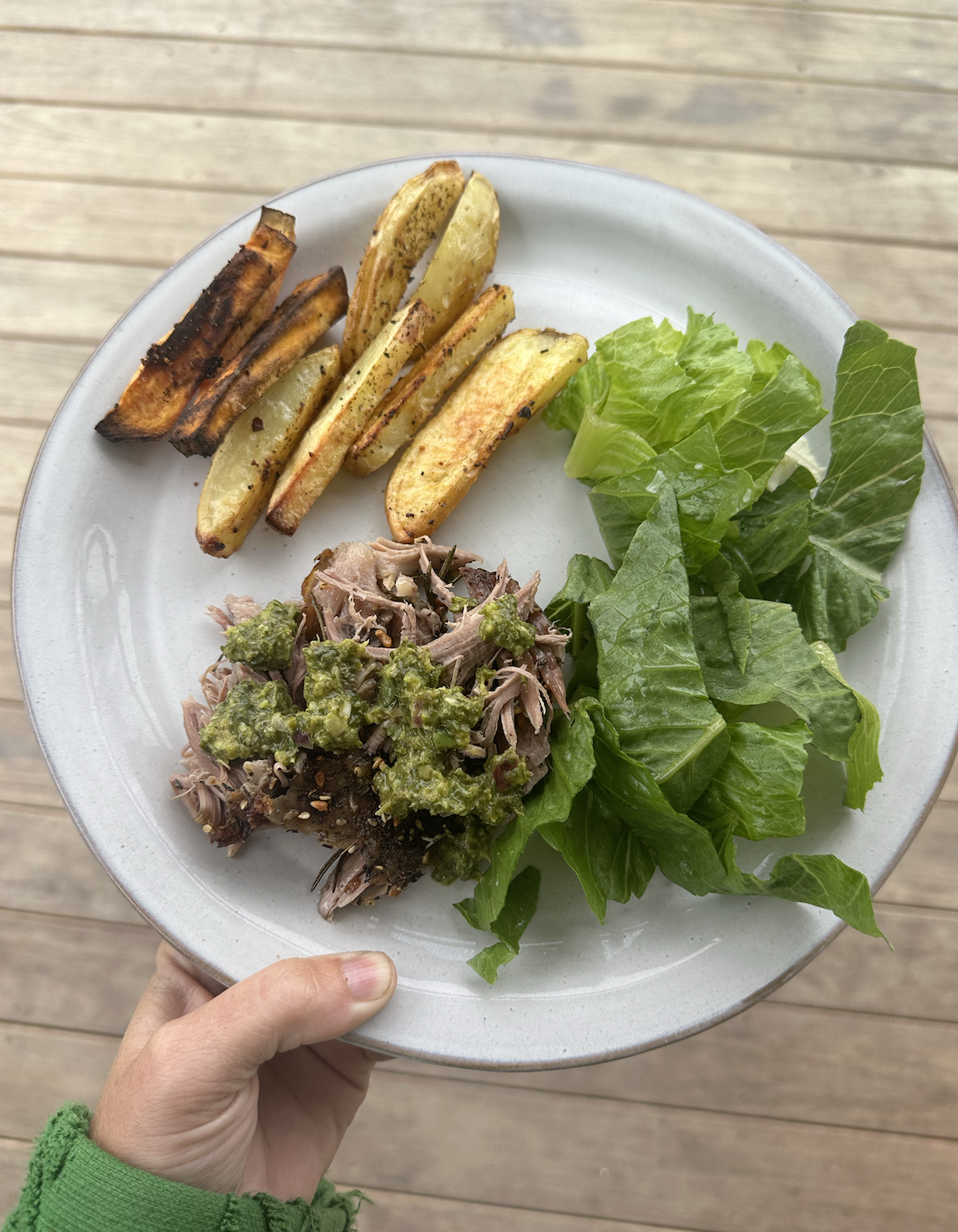 I also love slow cooked meats because you can put them on in your little ones nap time (if you’re lucky) and then not have to cook during witching hour which makes life a lot easier!! This ones great as it only takes 4 hours in the oven, so you can go out all morning and run your errands, see your friends, have a coffee, then come home for rest time and pop it in the oven!