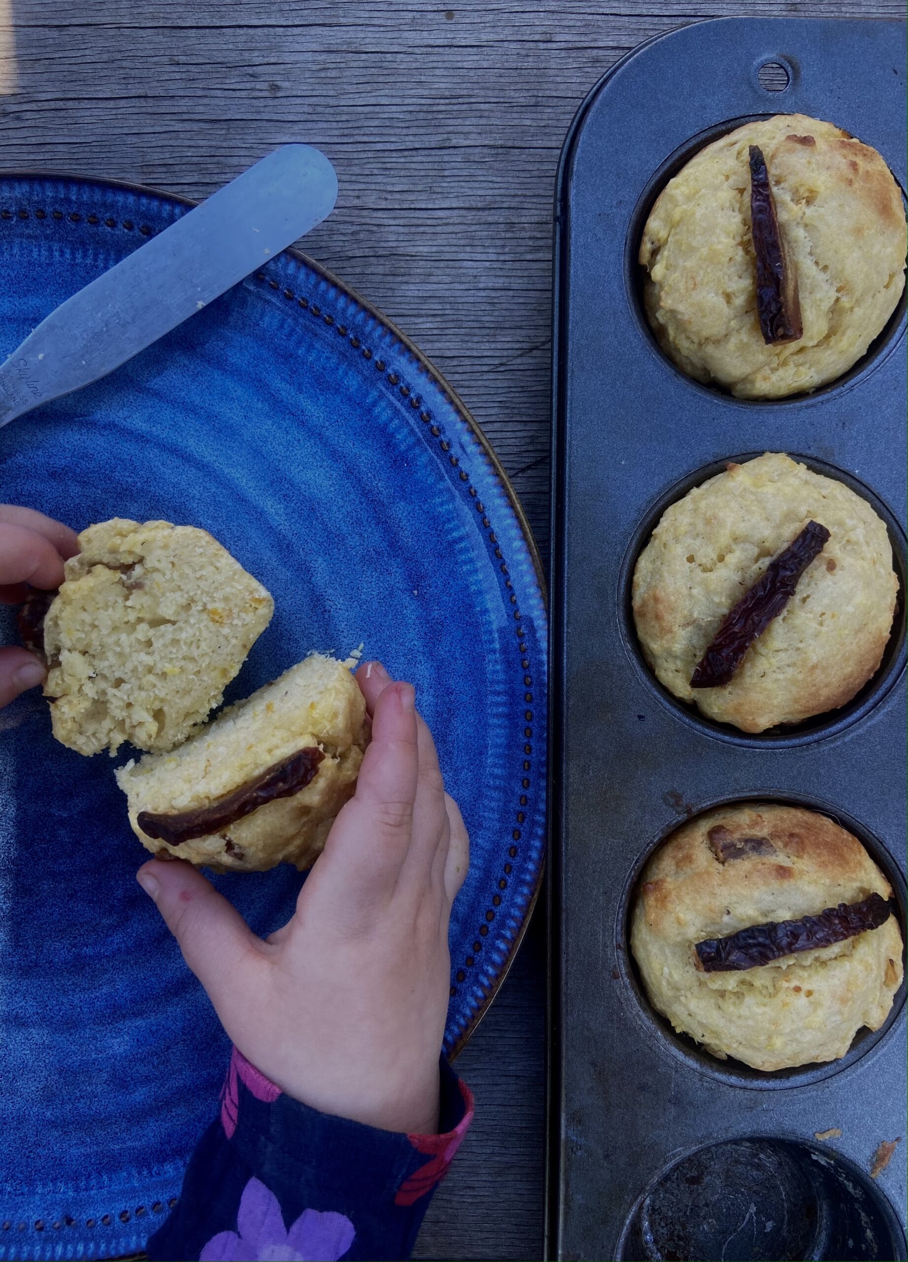 These snack-sized muffins are full of fibre and protein for your little ones. They are naturally sweetened and full of good fats. This recipe uses the whole orange, skin and all for additional fibre and a lovely soft consistency. Dried figs or prunes could replace the dates and you could use coconut yoghurt if you would like to make them dairy free.