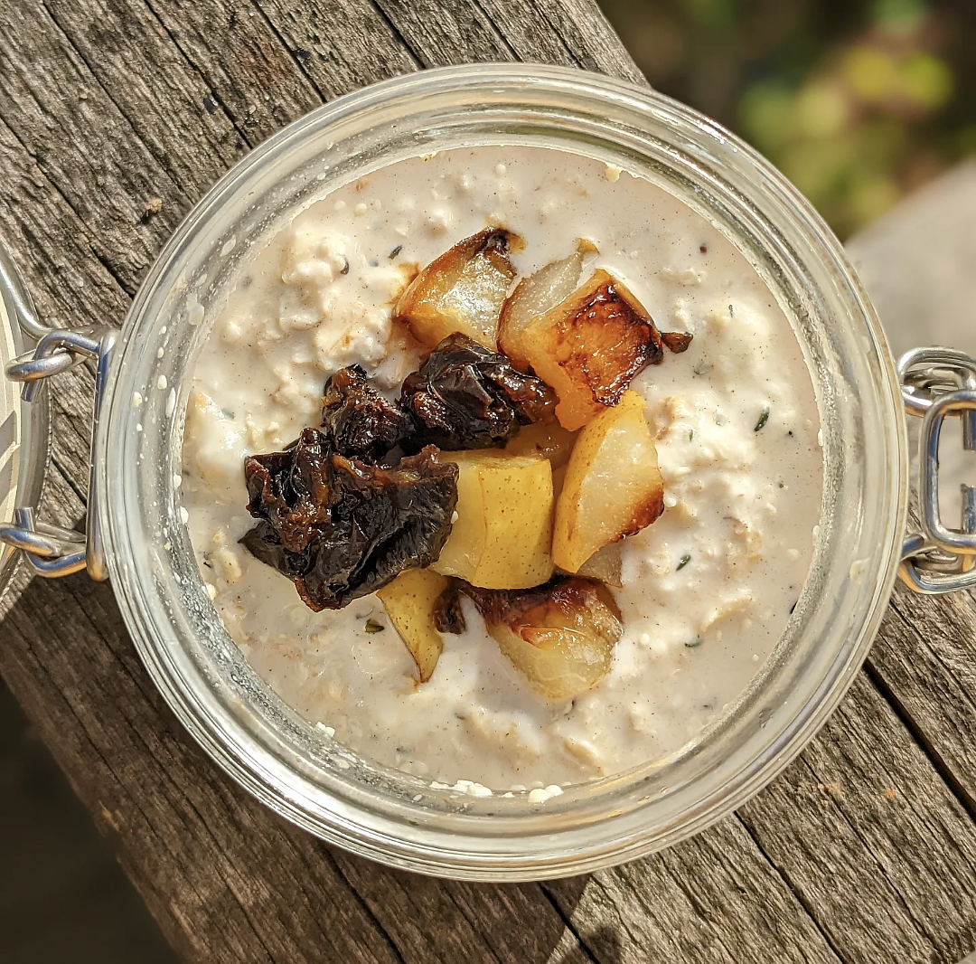 This is one of those beautiful, easy breakfasts that works just as hard as it tastes good. If you have a little one who needs some extra digestive support, this combination of pear, prunes, oats and seeds is a gentle and nourishing way to help keep things moving – also great for pregnant or postpartum mamas who might need a bit of help with constipation.
