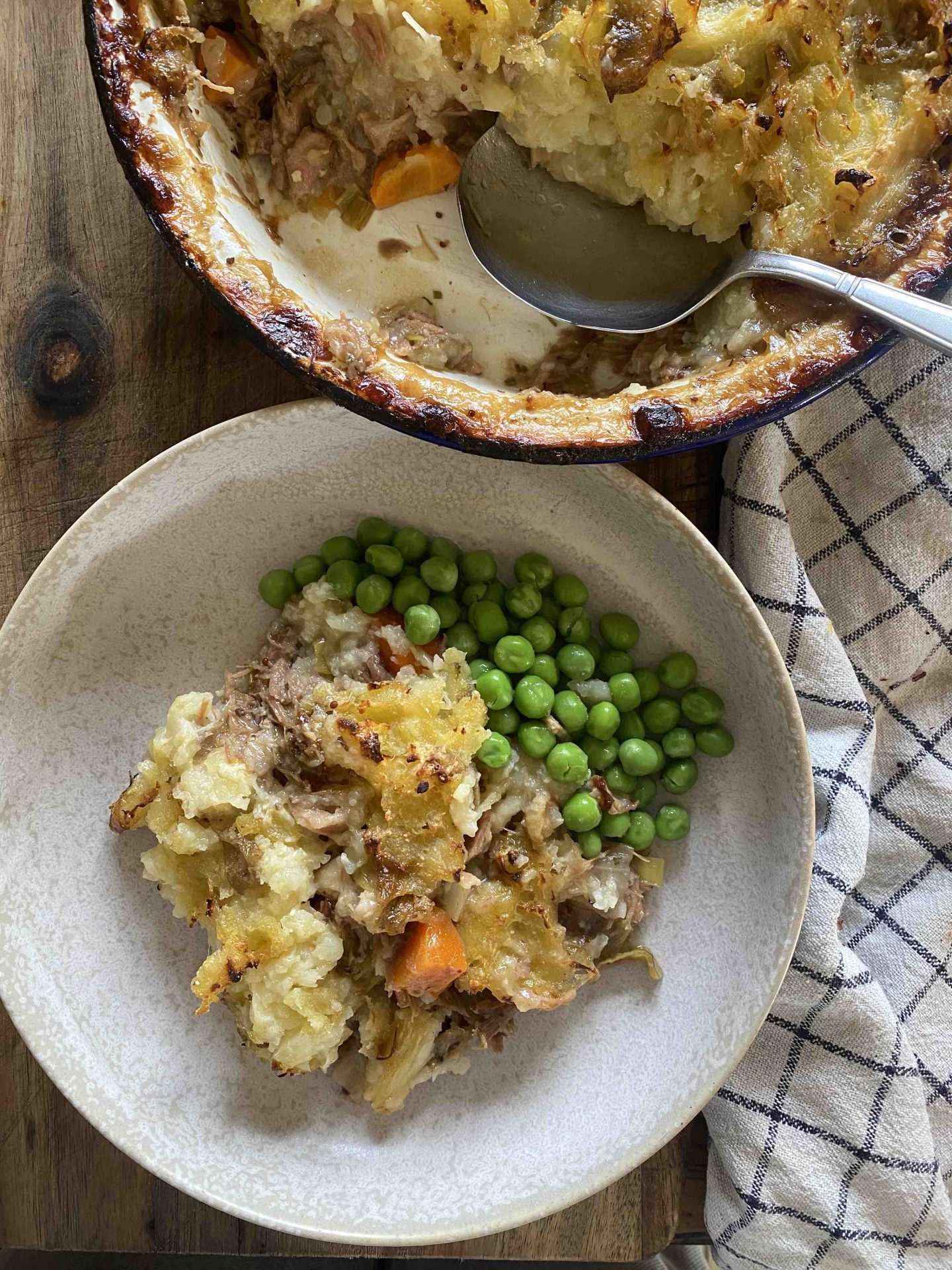 This is a simple way to transform any leftovers into a totally different meal. Dishes like this are incredibly versatile, so use whatever you have on hand. It’s a great way to use up any sad looking vegetables in the bottom of your fridge. I added half a leek and some old parsley to the filling, and some wrinkly parsnip and leftover cauliflower to the mashed potato topping. If there isn’t much pork left you can always bulk it out with a can of lentils or beans.