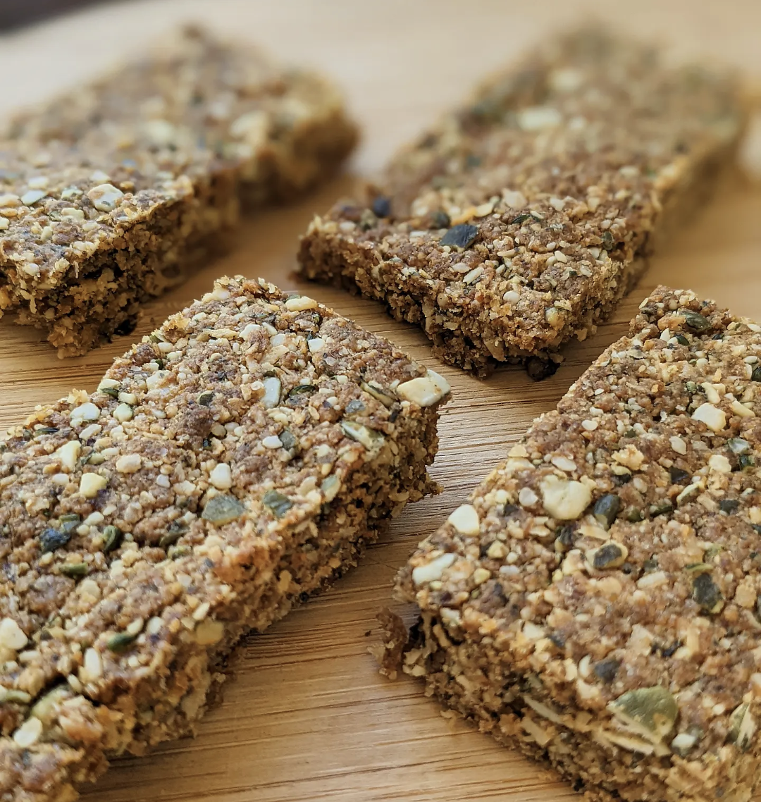 * Note this recipe can be made two ways – either baked or just pressed into a container and placed into the freezer to set & the fridge to store once chopped