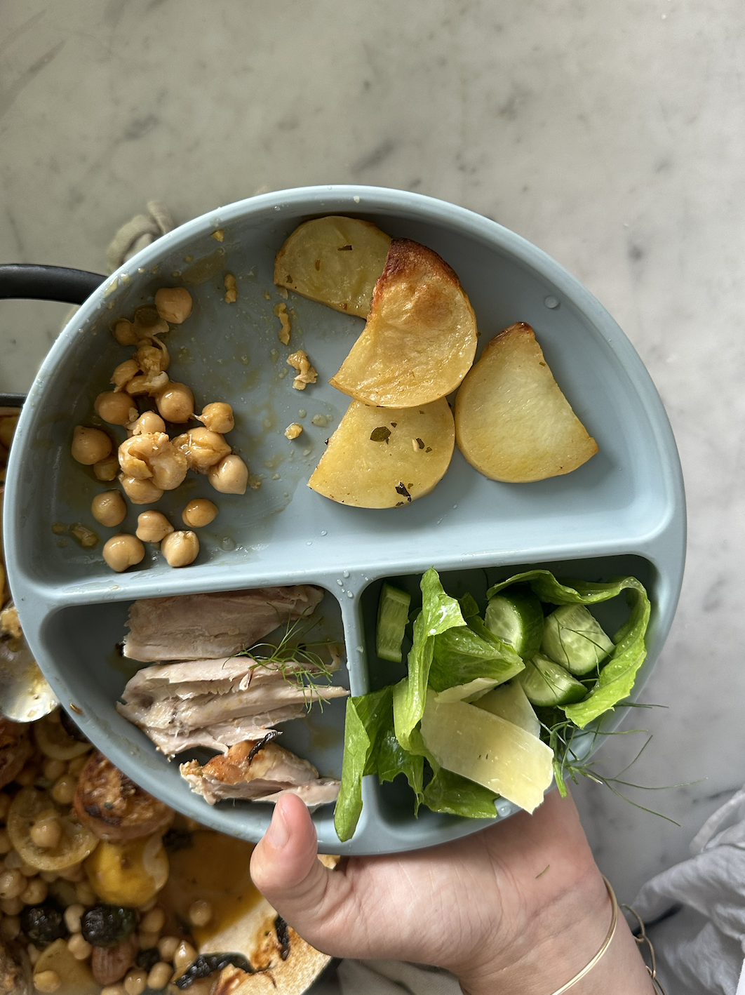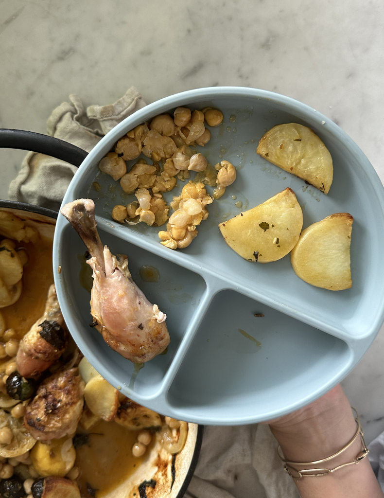 This meal can be easily adapted for BLW as chicken drumsticks make a perfect BLW food – easy to pick up and chew the chicken off the bone – just remove any grissly bits before you offer it. You can of course offer the chicken shredded off the bone if you prefer.