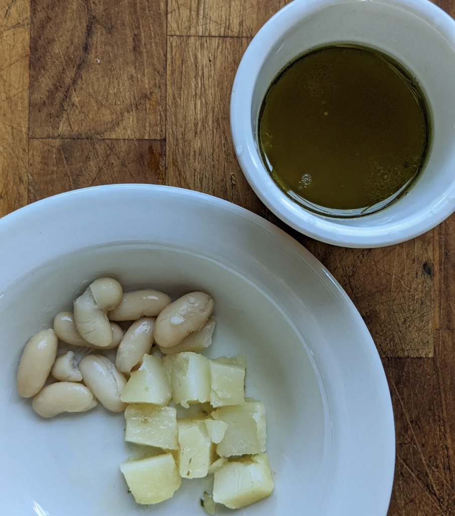 You can blend all the meal together for a delicious puree, or you can offer it ‘deconstructed’ for BLW by squishing the beans with your finger and offering some broth in a cup alongside.