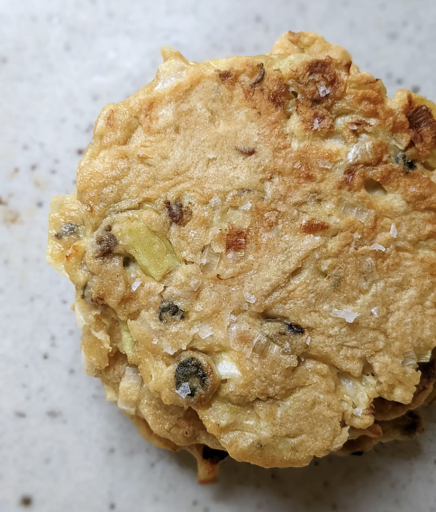 Once hot, begin spooning the mixture into the frying pan into the shape of fritters
