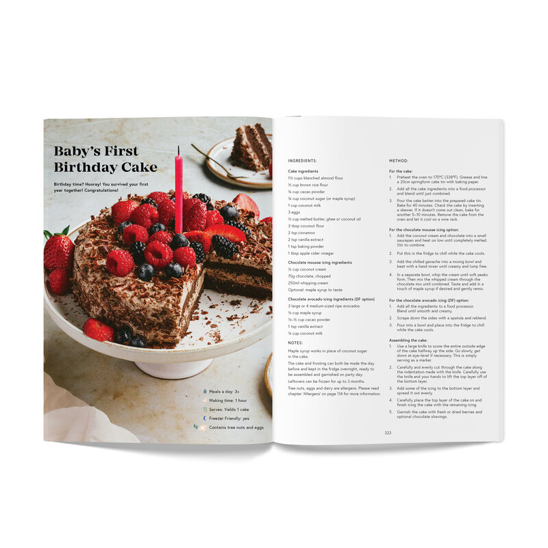 An incredible hardcover book with over 400 pages of evidence-based insights, including over 100 family-friendly recipes to have the whole family eating together (because who has time to make more than one meal!).