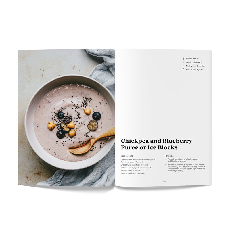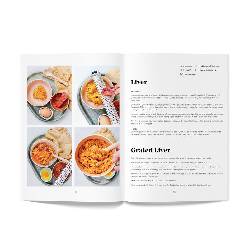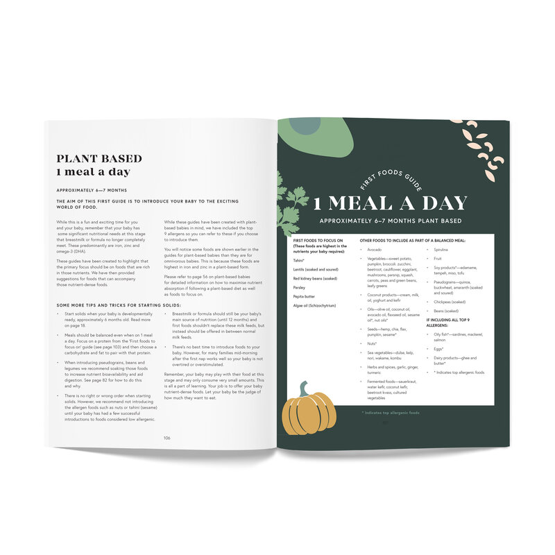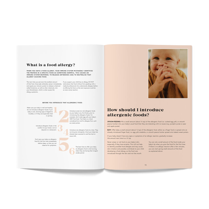 Almost 300 pages packed with insights and tips on transitioning from milk feeds, choosing a feeding method to suit your family, navigating the top allergenic foods, which nutrients to focus on to meet your baby’s nutritional needs and when to incorporate certain foods in their diet in the most mindful way (plus much more!)