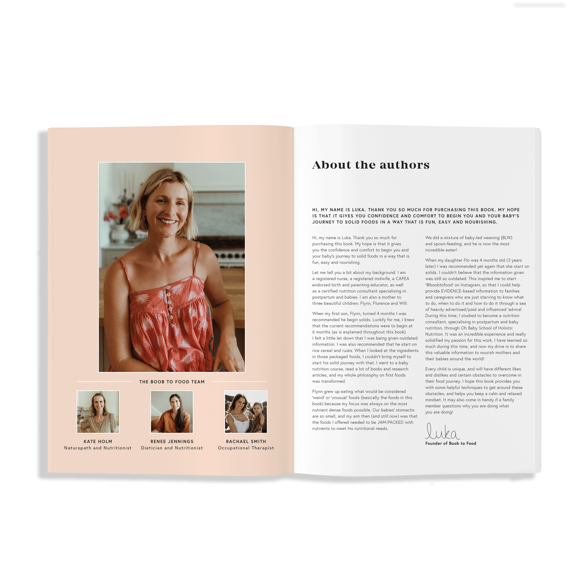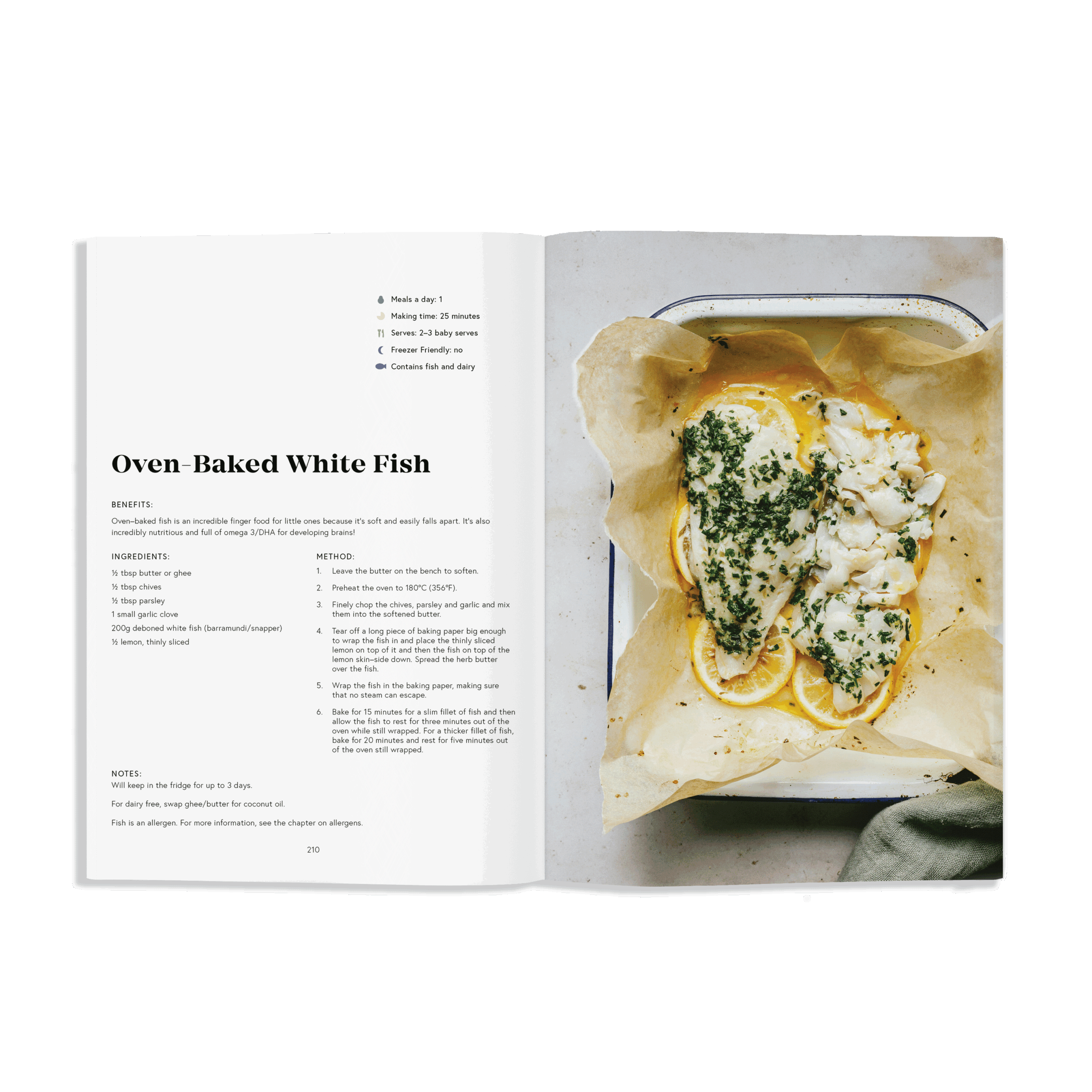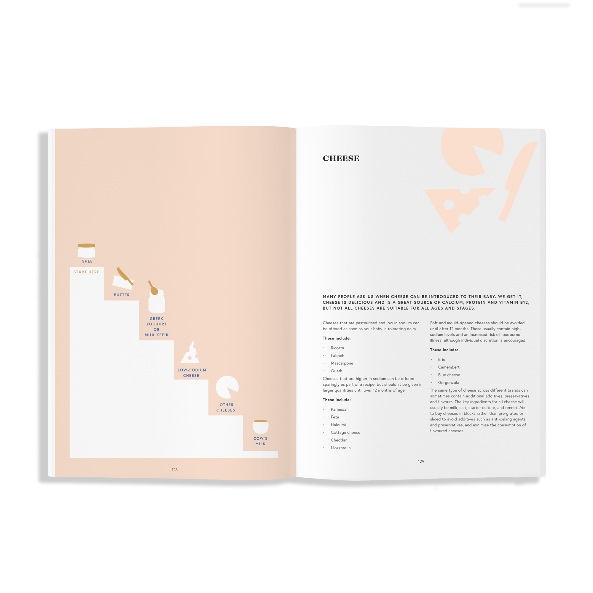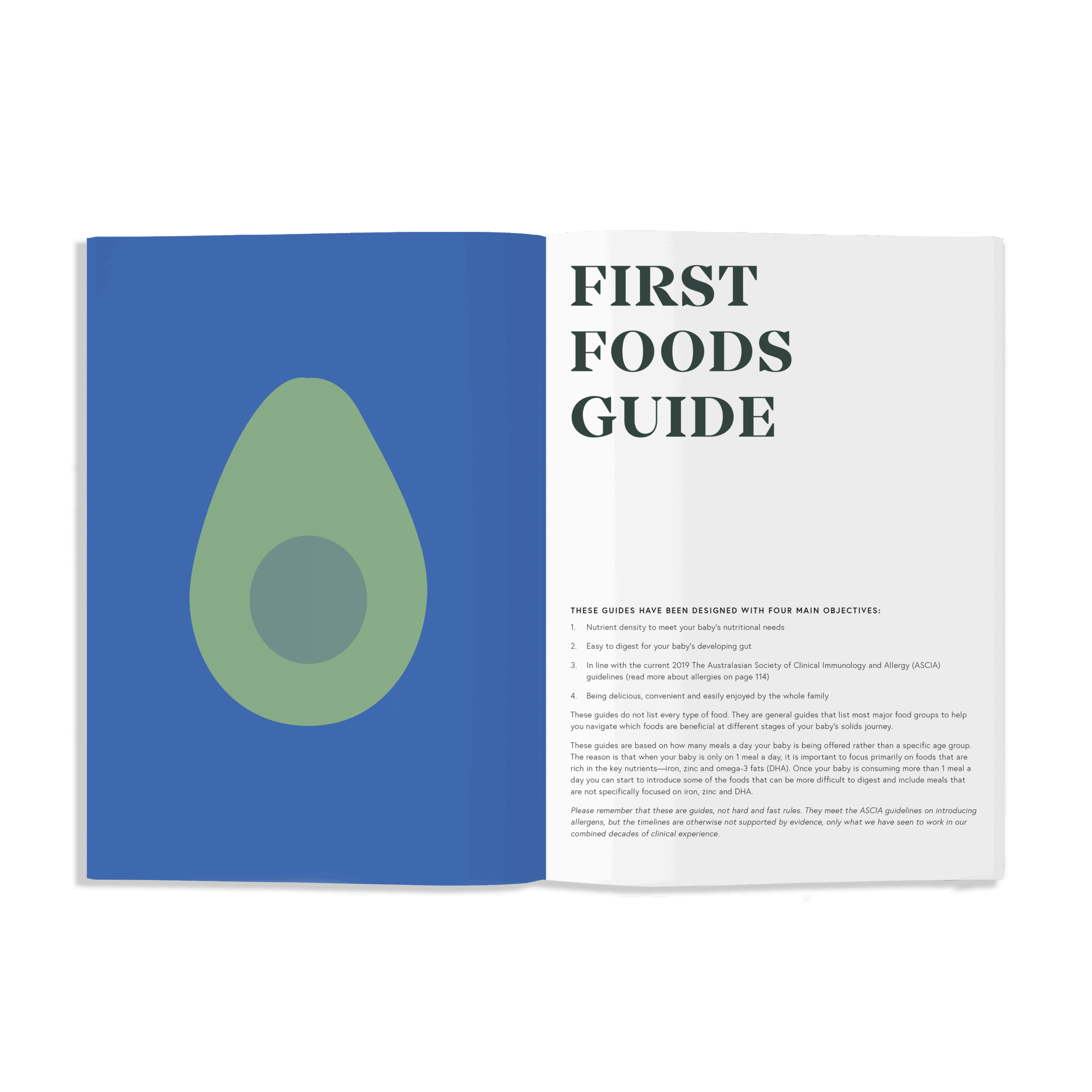 Almost 300 pages packed with insights and tips on transitioning from milk feeds, choosing a feeding method to suit your family, navigating the top allergenic foods, which nutrients to focus on to meet your baby’s nutritional needs and when to incorporate certain foods in their diet in the most mindful way (plus much more!)
