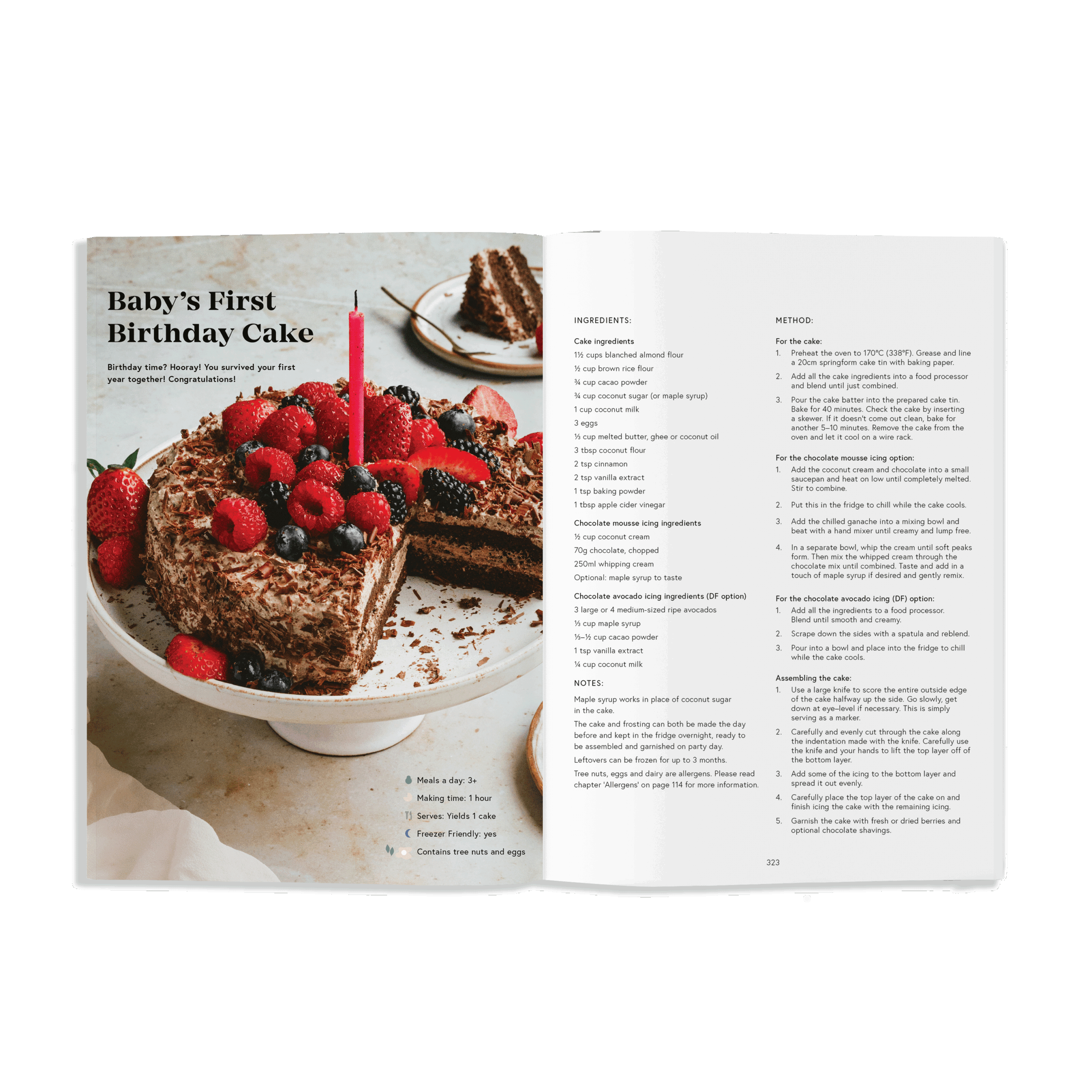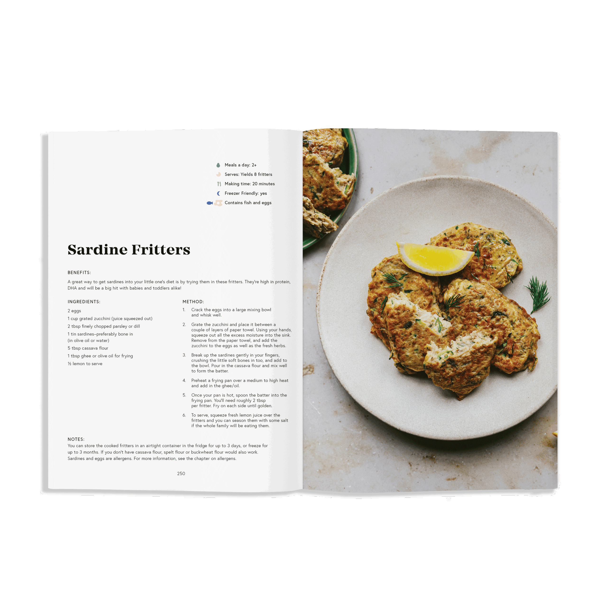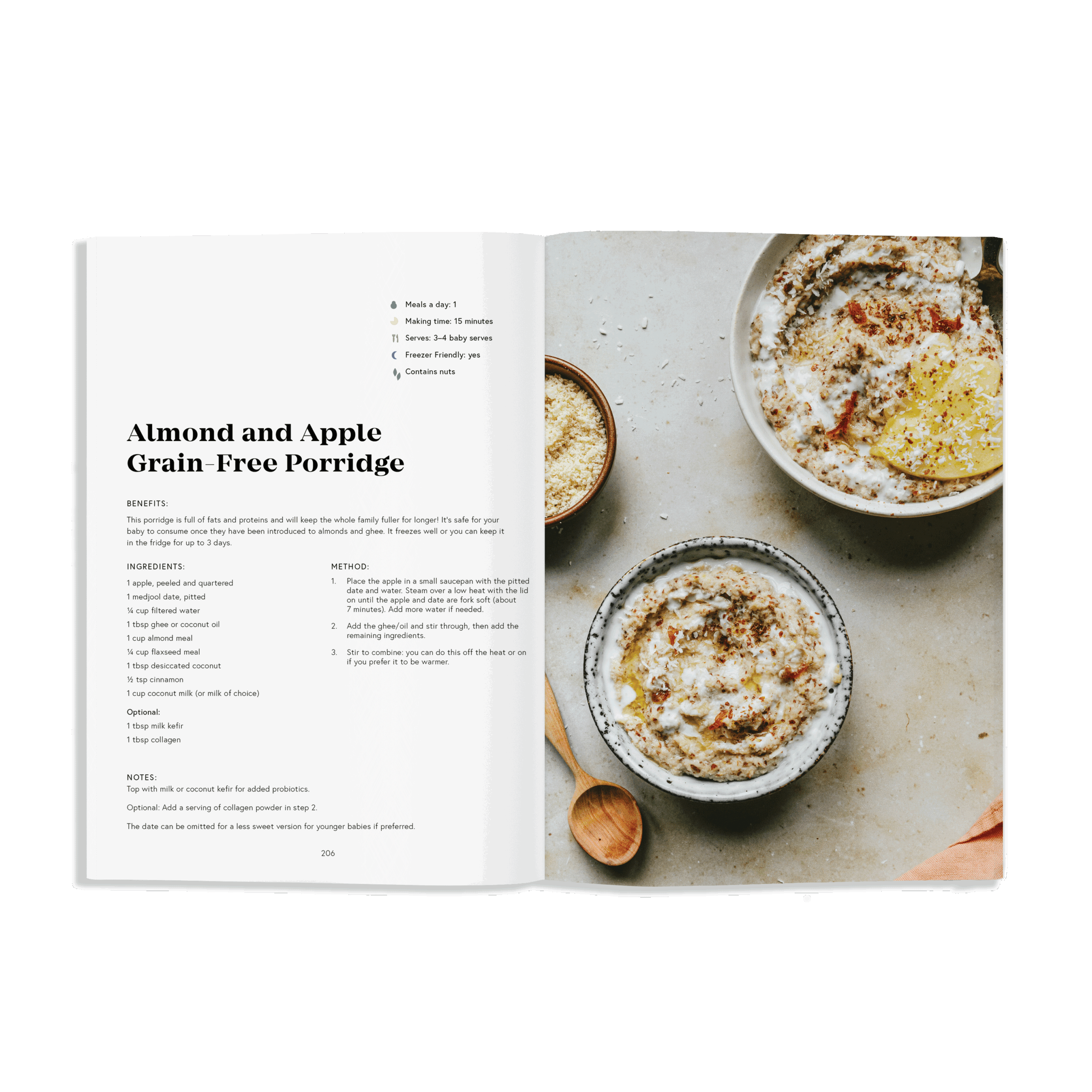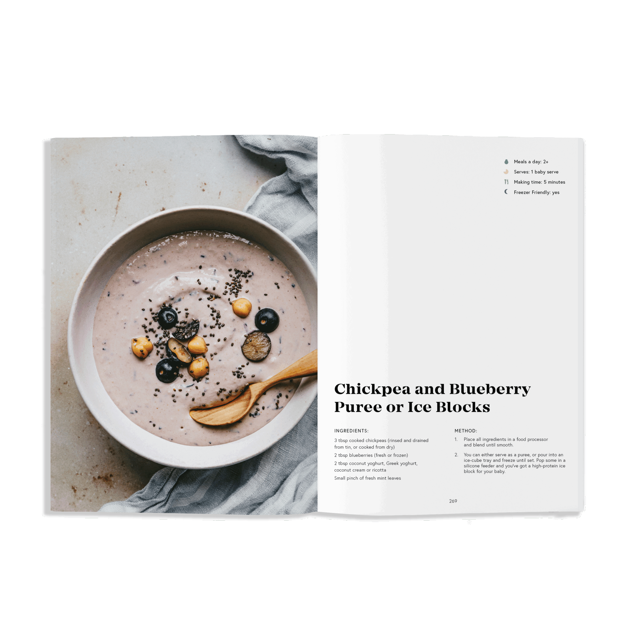 Almost 300 pages packed with insights and tips on transitioning from milk feeds, choosing a feeding method to suit your family, navigating the top allergenic foods, which nutrients to focus on to meet your baby’s nutritional needs and when to incorporate certain foods in their diet in the most mindful way (plus much more!)