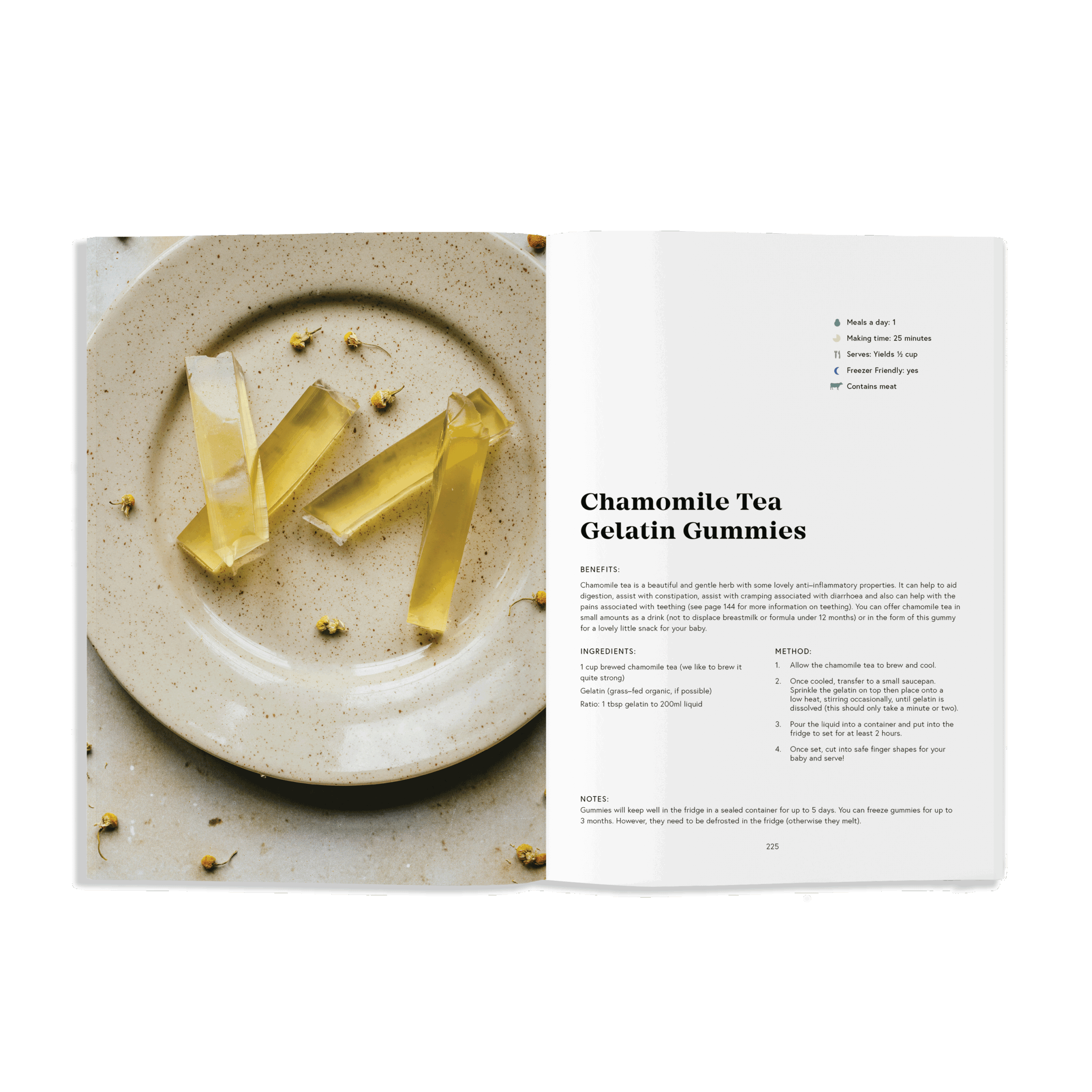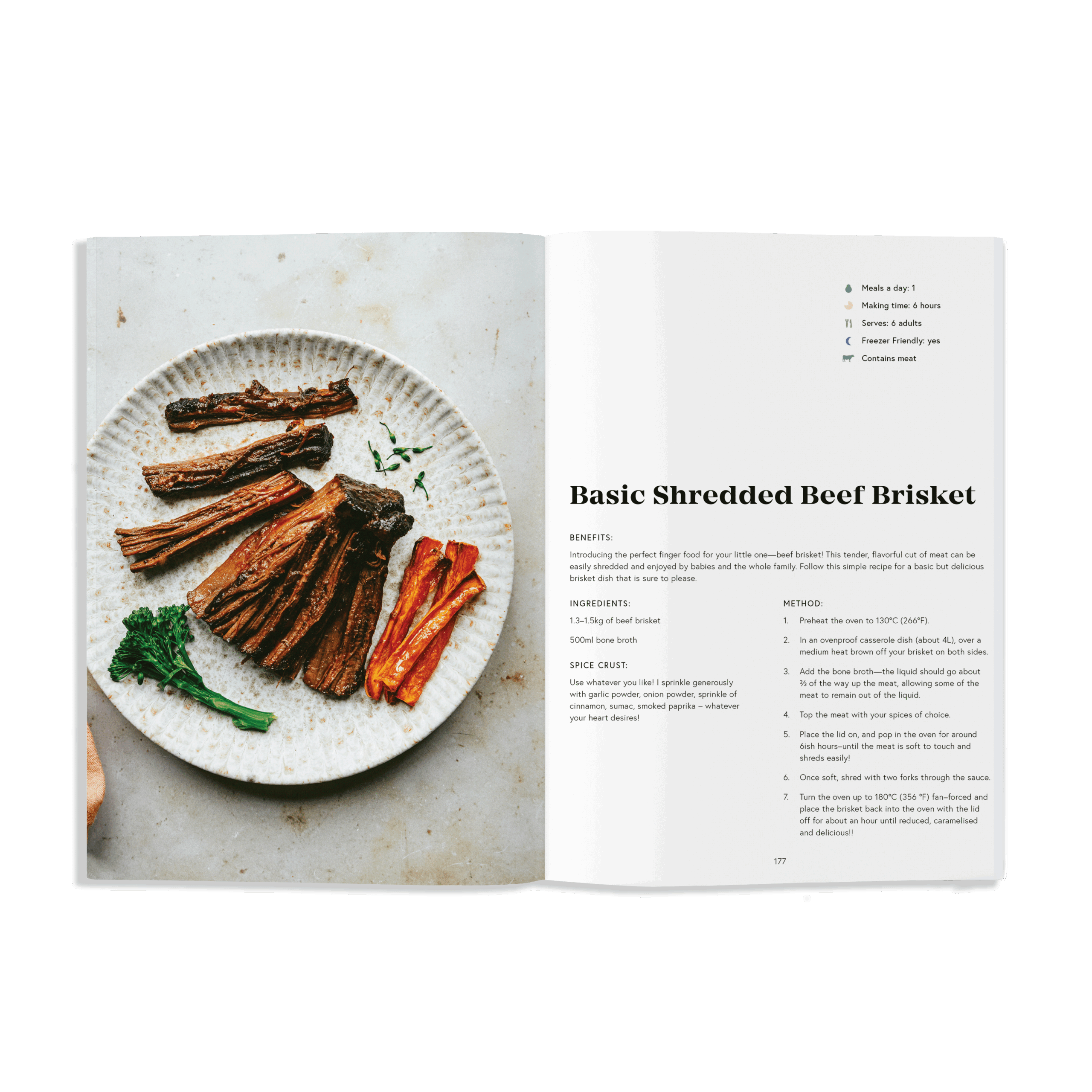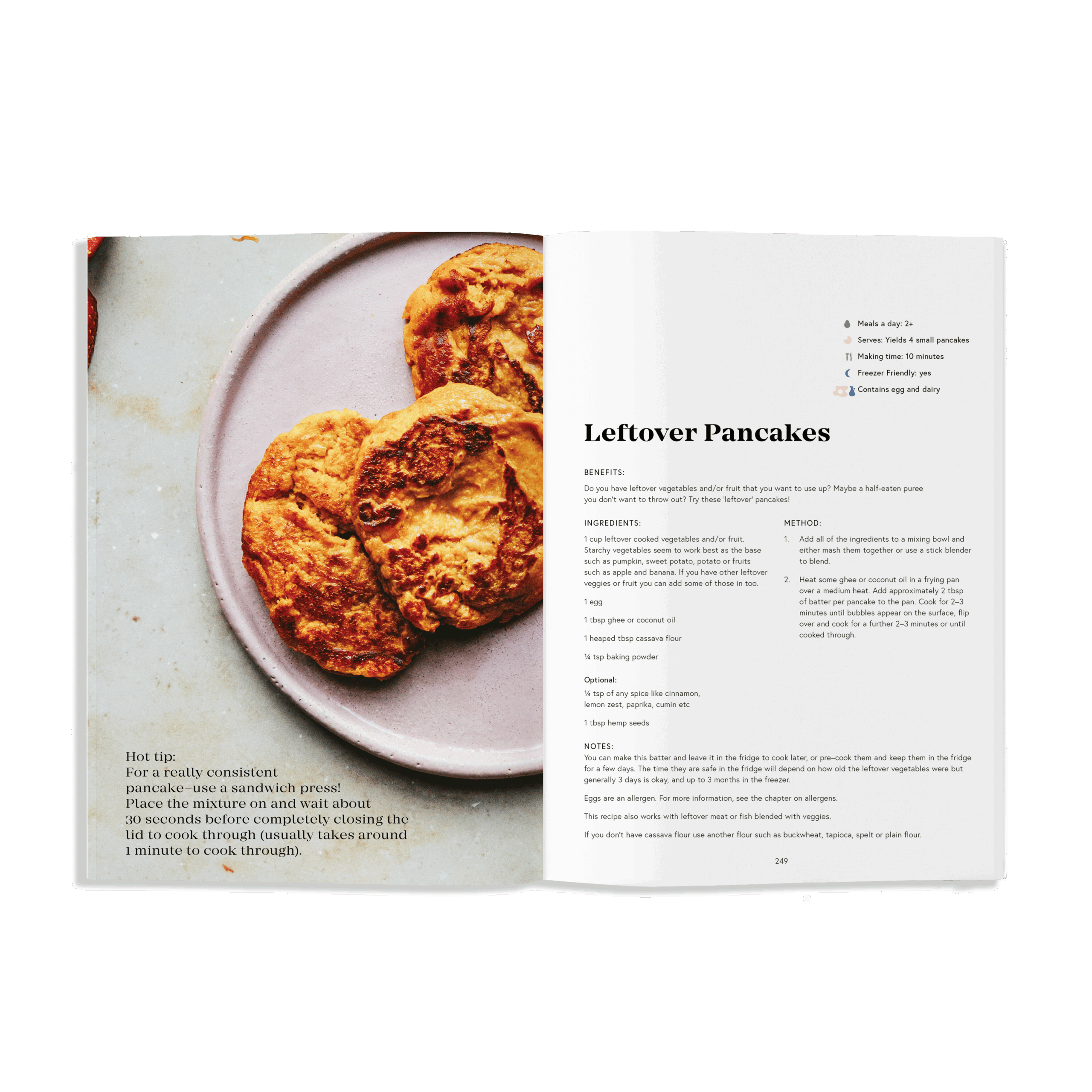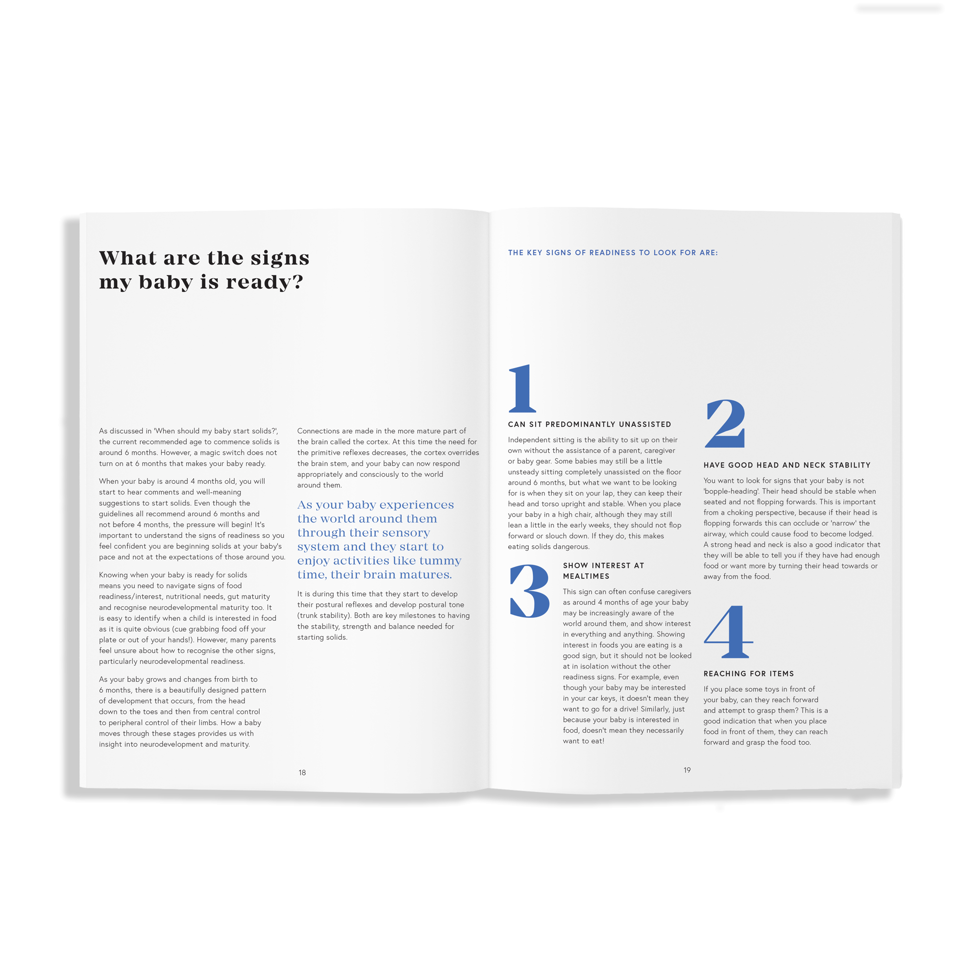 Almost 300 pages packed with insights and tips on transitioning from milk feeds, choosing a feeding method to suit your family, navigating the top allergenic foods, which nutrients to focus on to meet your baby’s nutritional needs and when to incorporate certain foods in their diet in the most mindful way (plus much more!)