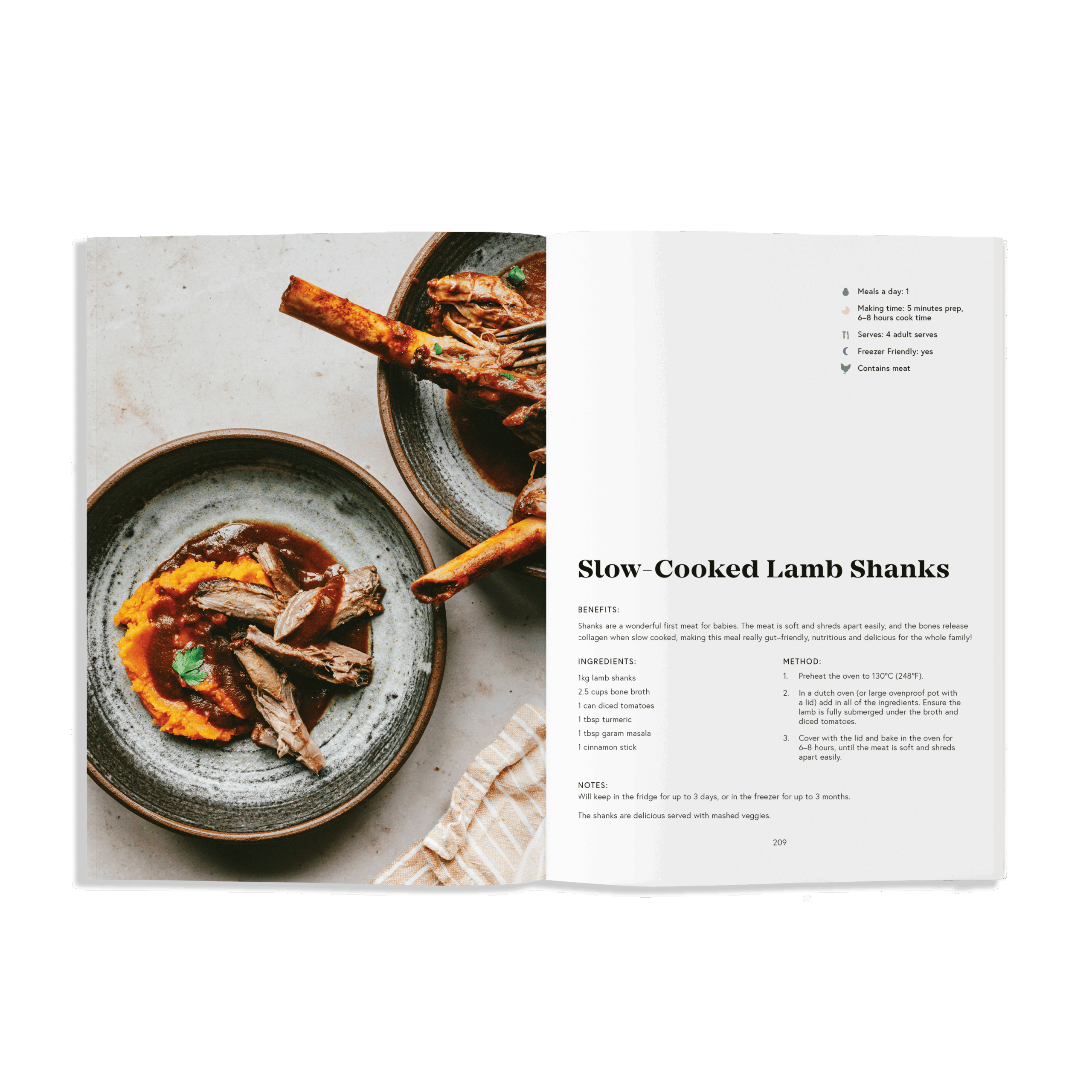 80+ recipes all the way from very first foods to eating with the family, that are nutrient dense, dietitian approved and specifically developed with bub’s needs in mind (that the whole family can enjoy!)