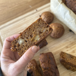 Bake for around 50-60 minutes. Check at 50 minutes with a toothpick or knife inserted into the middle of the loaf, if it comes out clean the bread is ready. If making muffins, check after 20 minutes.