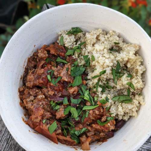 This mince can be served as a deconstructed taco e.g. with avocado, fresh vegetables/sauerkraut or with cooked quinoa